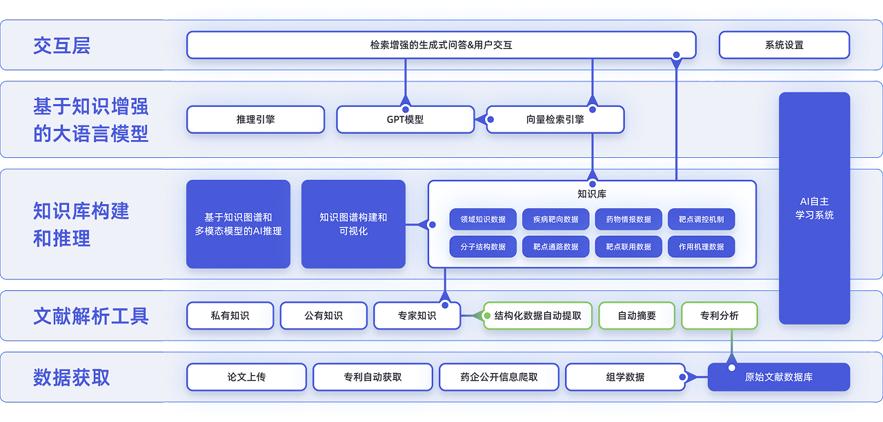 基于多Agent架构,突破传统单文档或多文档问答限制,支持海量文献与知识库的综合解析,可处理复杂科研问题,如"某靶点抑制剂在不同癌种中的疗效差异"。依托超10亿节点生物医学知识图谱,实现药物、靶点、适应症及研发机构的动态关系网络展示,揭示潜在合作机会与研发风险。 集成 ClinicalTrials、FDA、NMPA 等权威数据源,实时更新临床试验结果、审批动态及政策法规,支持竞品分析与适应症趋势洞察,为决策提供时效性支撑。同时,依托全球超500万药物专利库,支持化学结构式相似度检索、专利家族树及核心化合物活性数据关联查询,有效规避侵权风险并识别可借鉴分子框架,实现一键生成药物立项与研发情报报告。